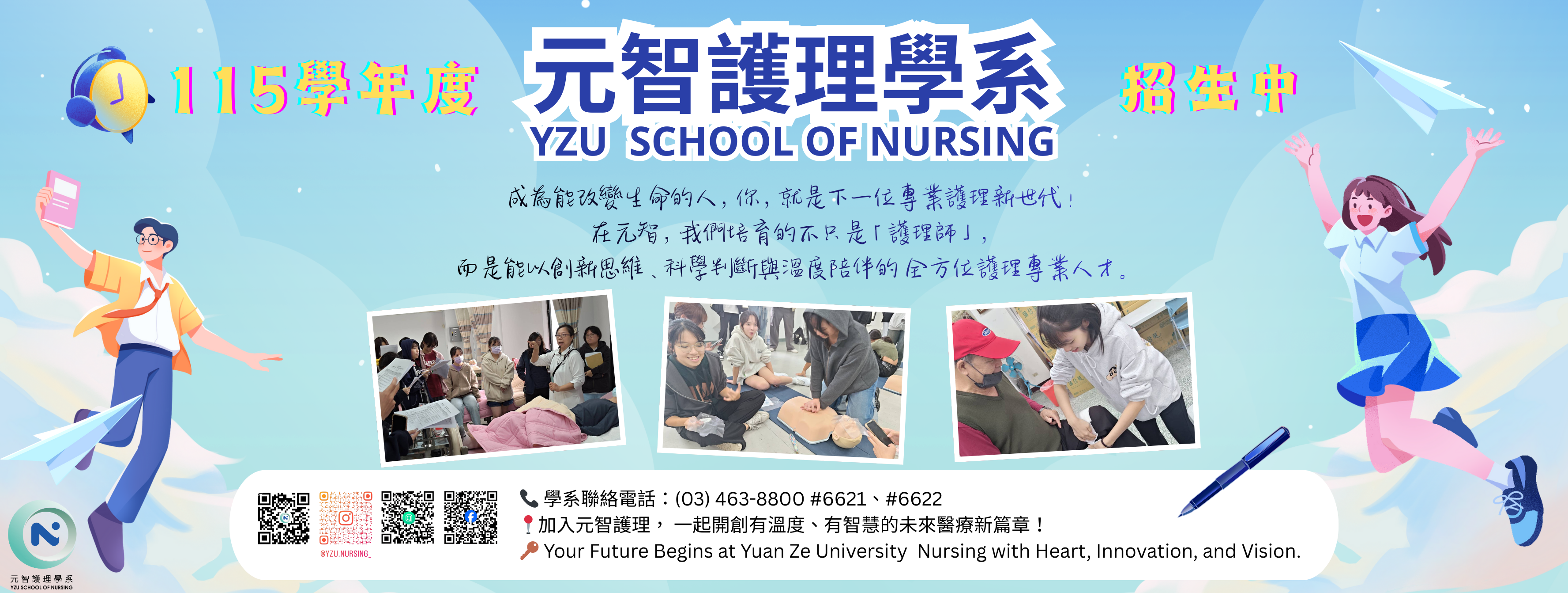 【今傳媒/記者簡勻青報導】元智大學護理學系與亞東紀念醫院攜手響應新北市教育局「新北大教育計畫」,共同舉辦「醫護創新之旅:從基礎到智慧的全面探索」營隊,吸引眾多對醫護領域充滿熱情的高中生踴躍參與。活動邀請新北市教育局劉明超副局長、元智大學廖慶榮校長、醫護學院院長暨亞東紀念醫院教學部副院長陳芸教授、亞東紀念醫院護理部副主任陳美芳等貴賓親臨,為學員們加油打氣,鼓勵他們勇敢追尋醫護夢想...Read More